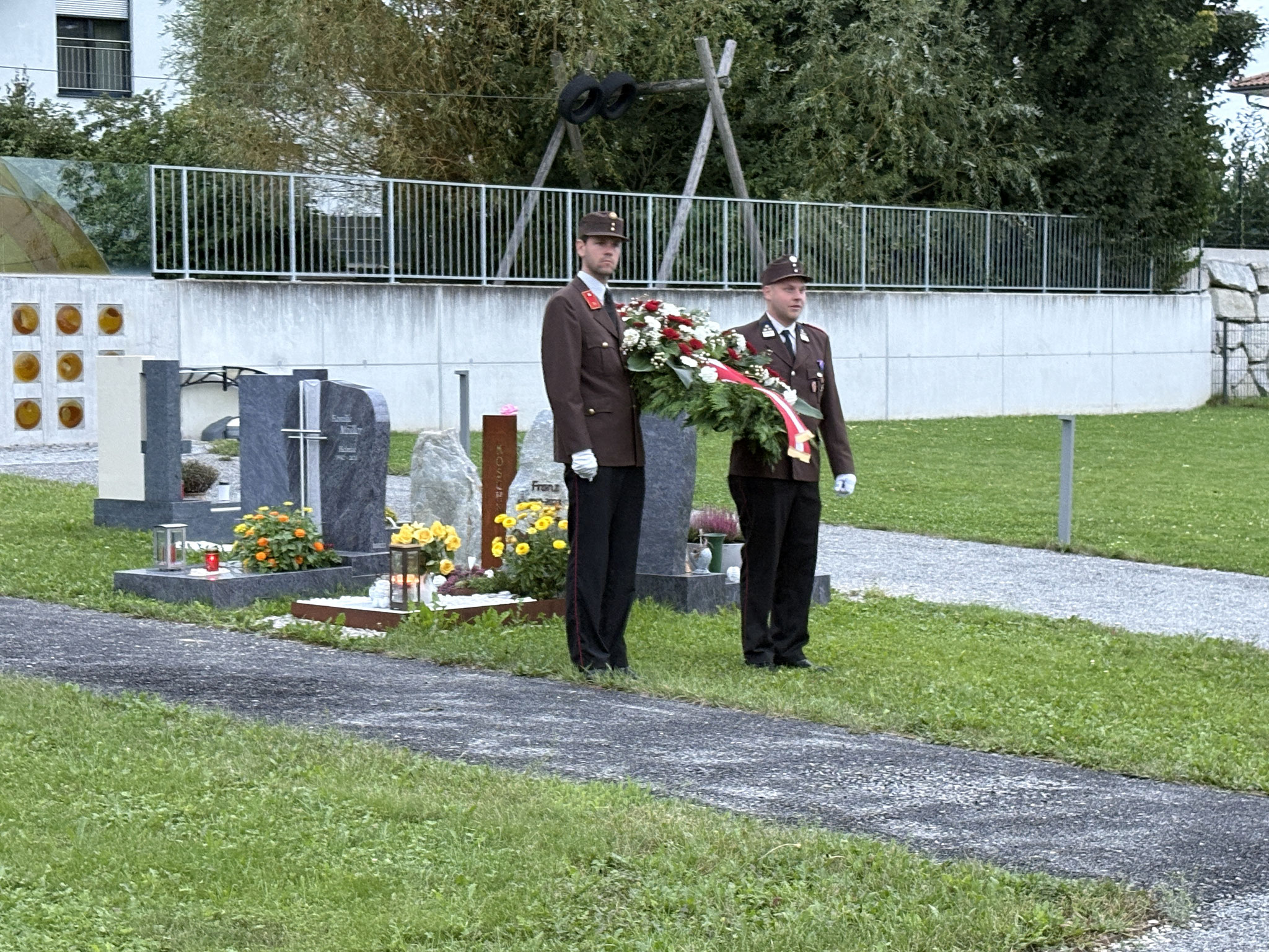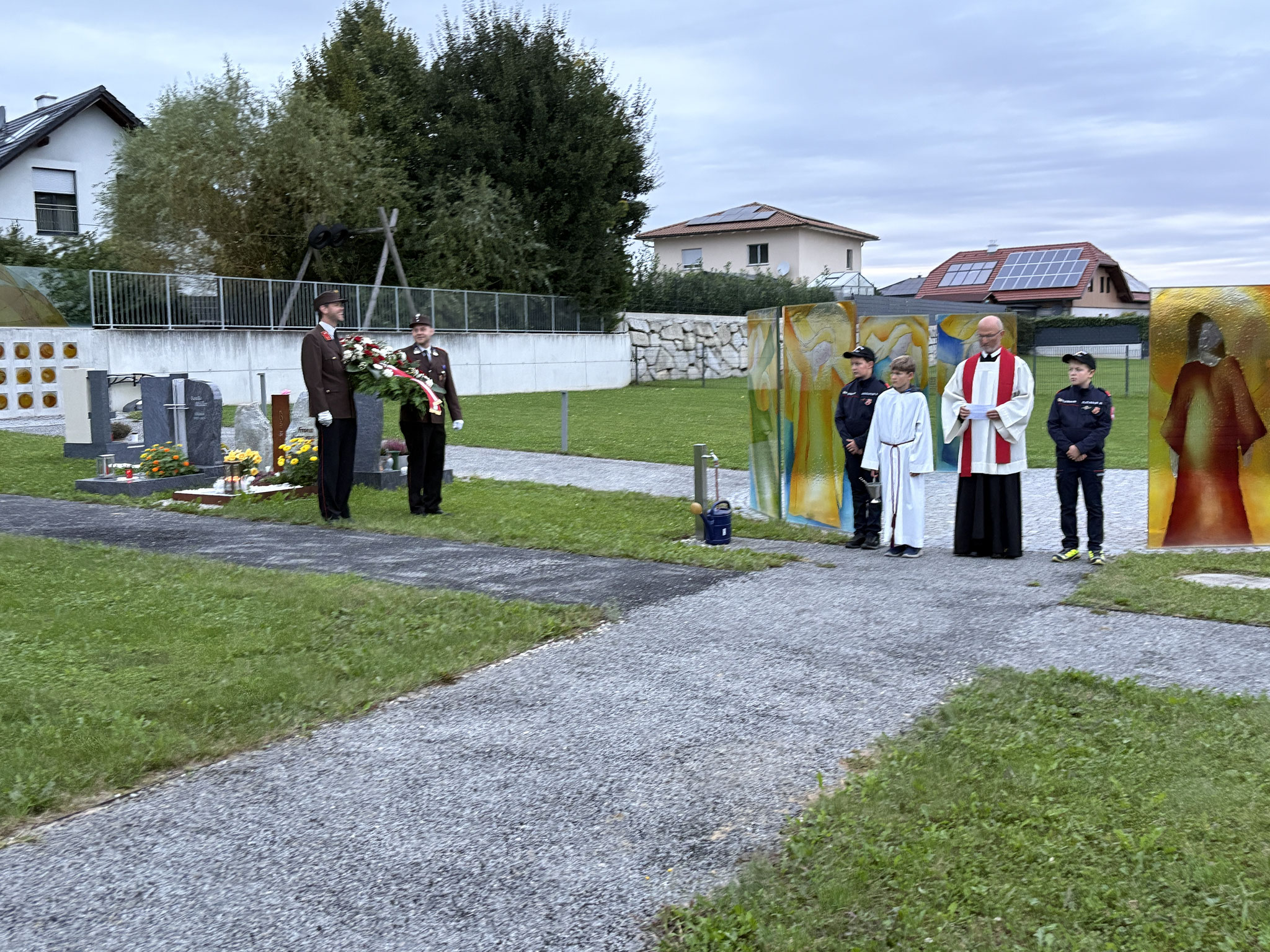 Nach der feierlichen Messe zog die Feuerwehr Eberstalzell zusammen mit dem Kameradschaftsbund, begleitet vom Musikverein Eberstalzell, in einem würdigen Zug zum Friedhof. Dort erfolgte die traditionelle Kranzniederlegung zum ehrenden Gedenken.