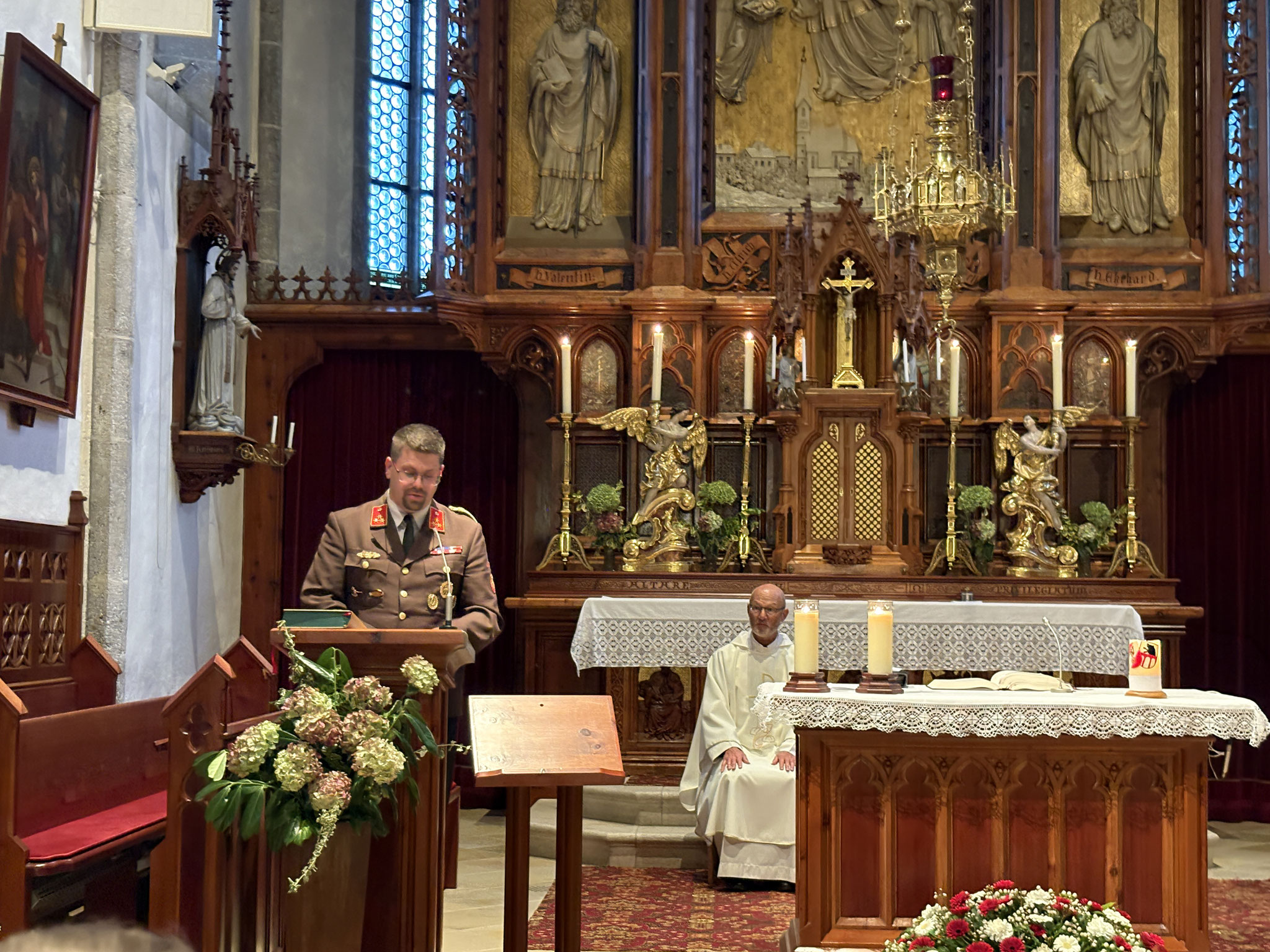 Feuerwehrkurat Pater Tassilo widmete seine Predigt dem Thema Kameradschaft – vom Bergkameraden über den Zimmerkameraden bis hin zum Feuerwehrkameraden – und erinnerte uns wie wertvoll diese Besonderheit der Kameradschaft, Zusammenhalt und gegenseitige Unterstützung sind.