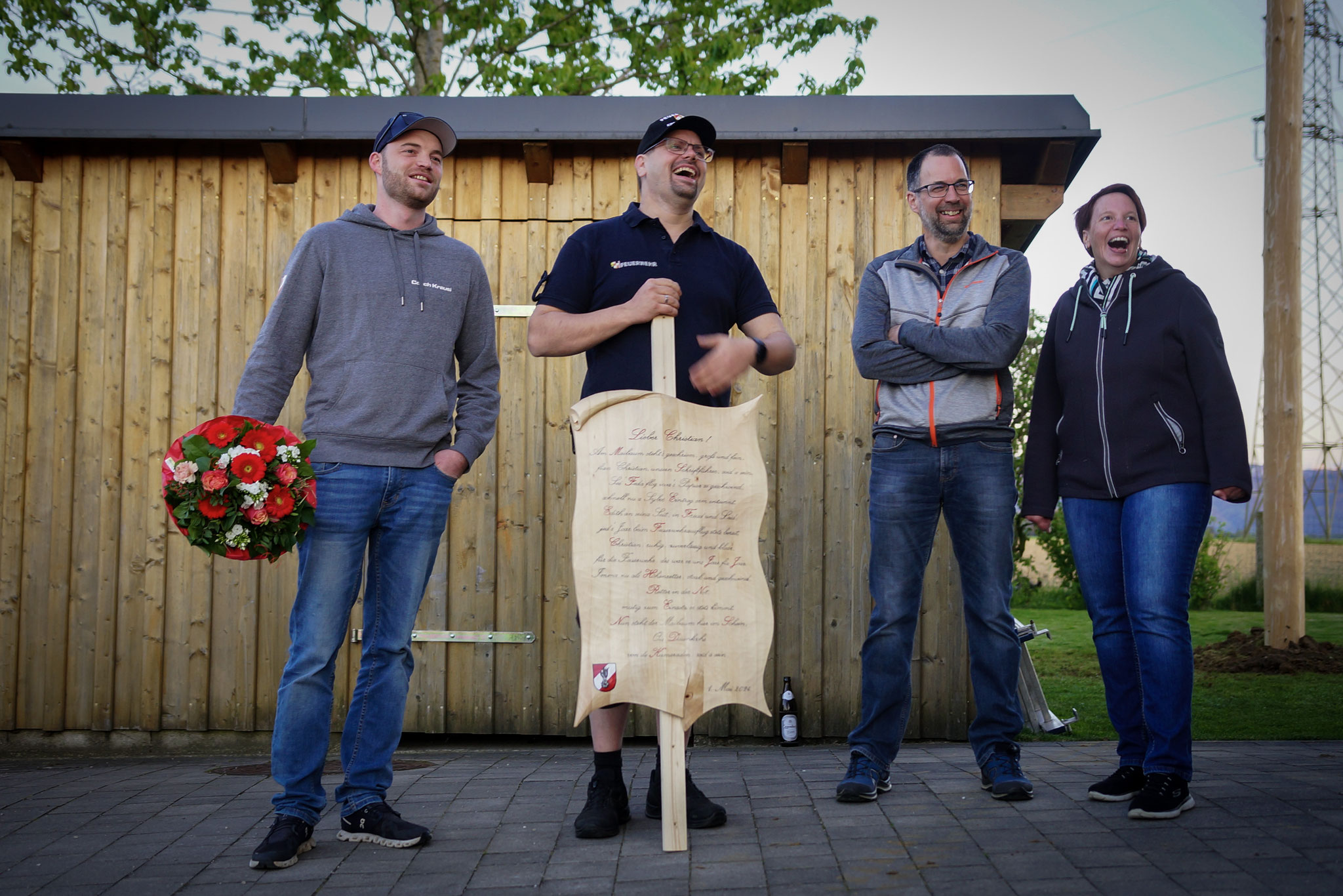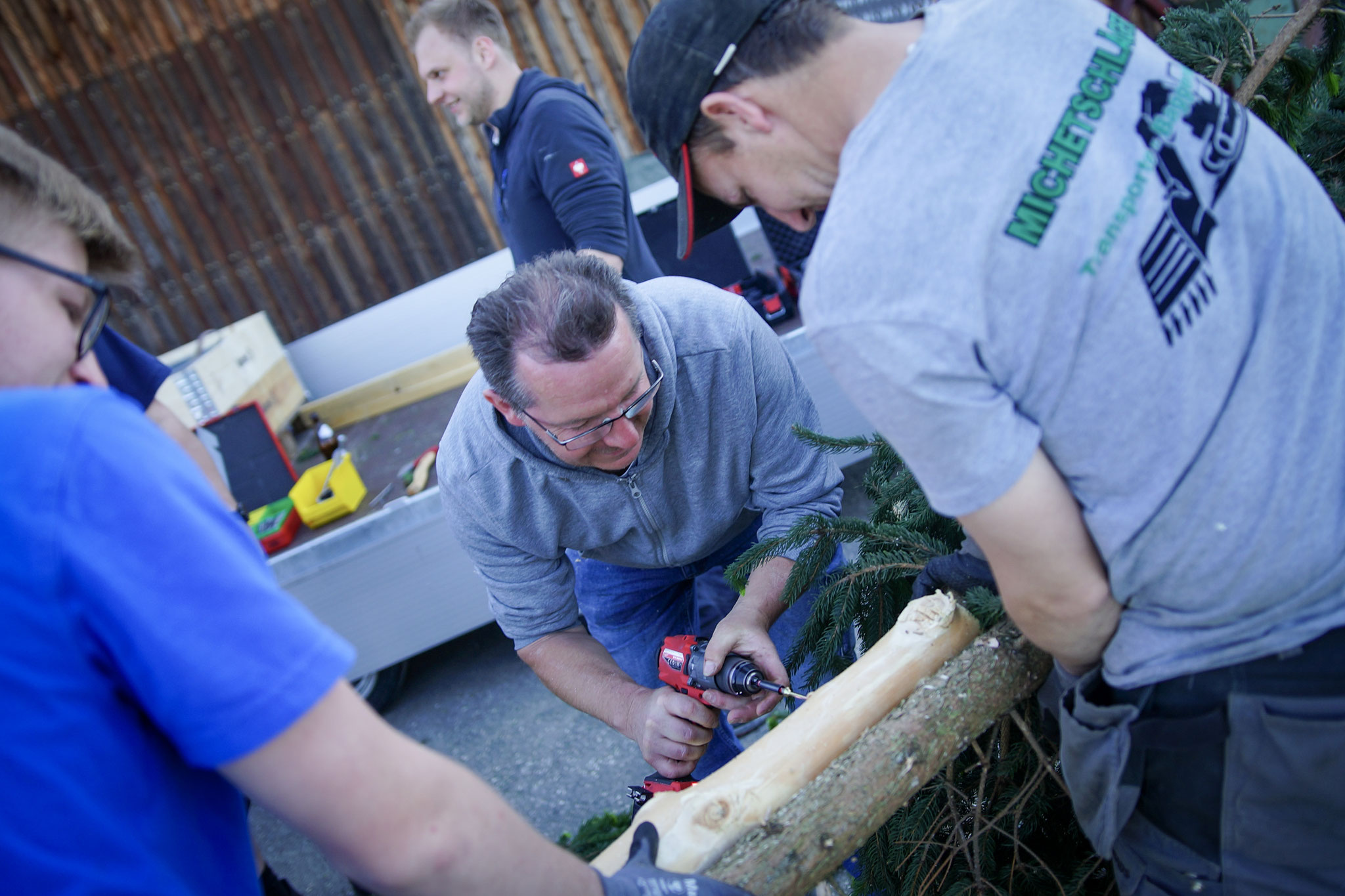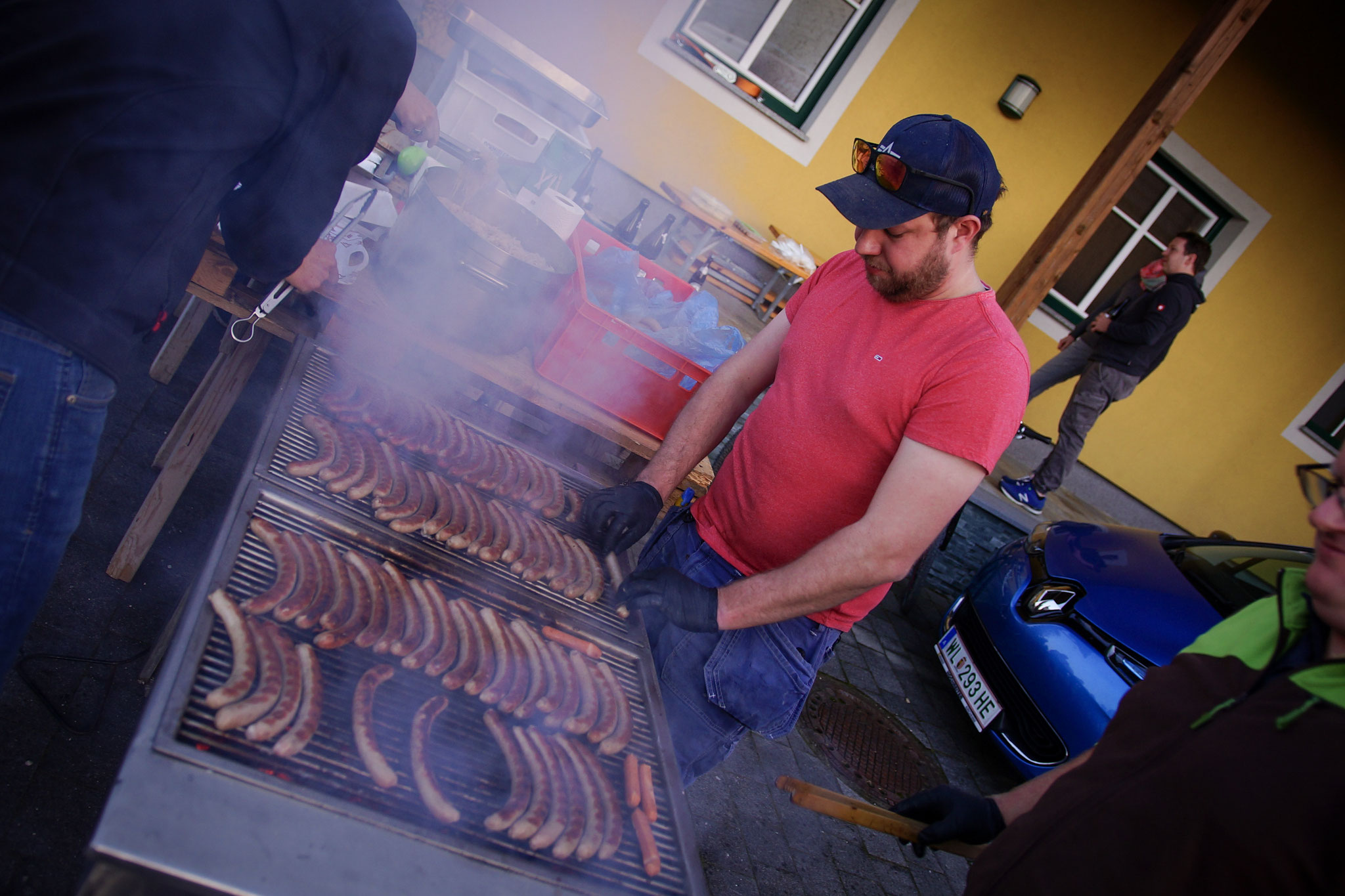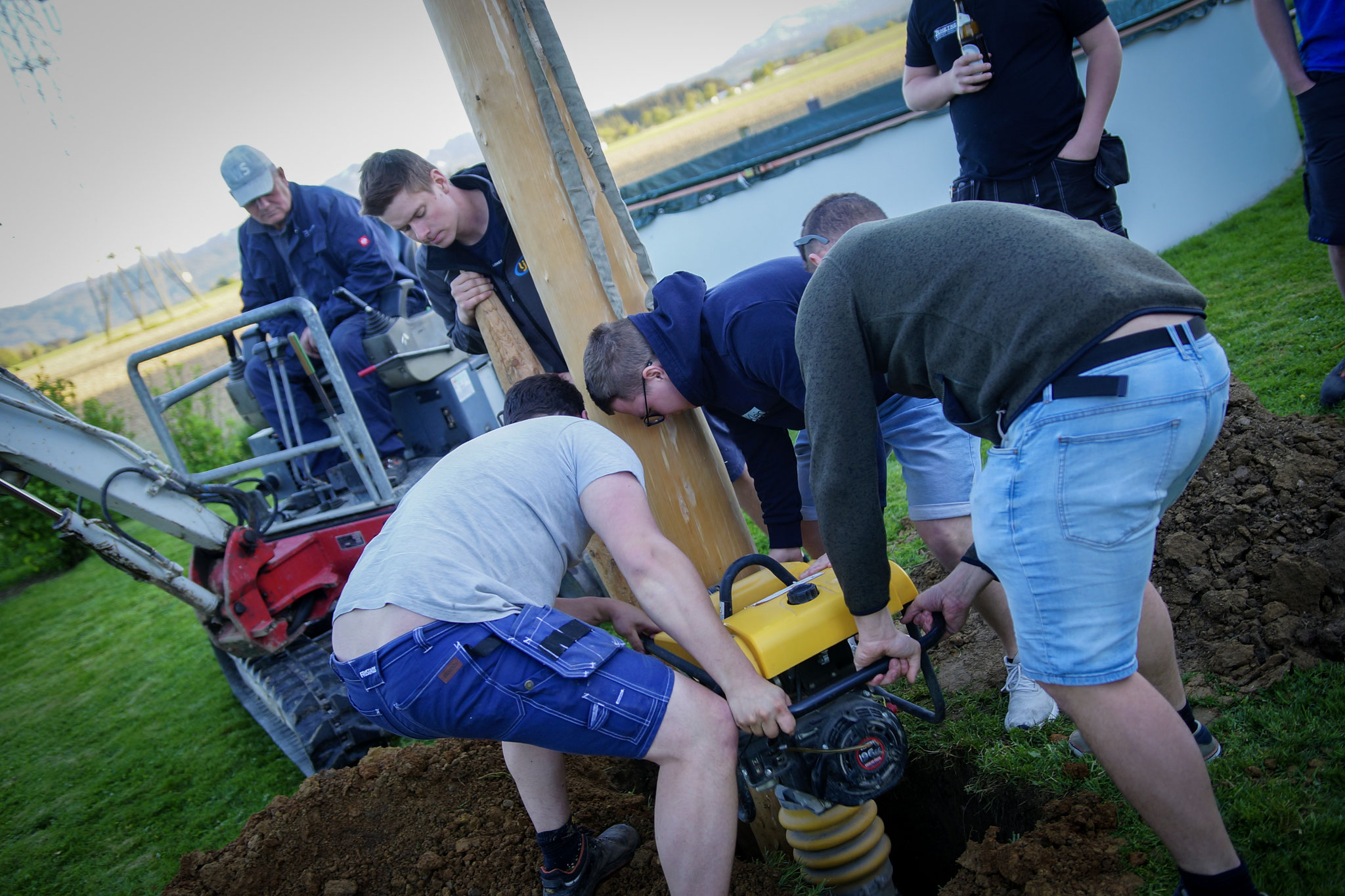 Im Feuerwehrhaus haben wir den Maibaum liebevoll vorbereitet und die Kränze gebunden, bevor wir ihn dann in einem festlichen Konvoi durch die Straßen von Eberstalzell begleitet haben. Und nun
