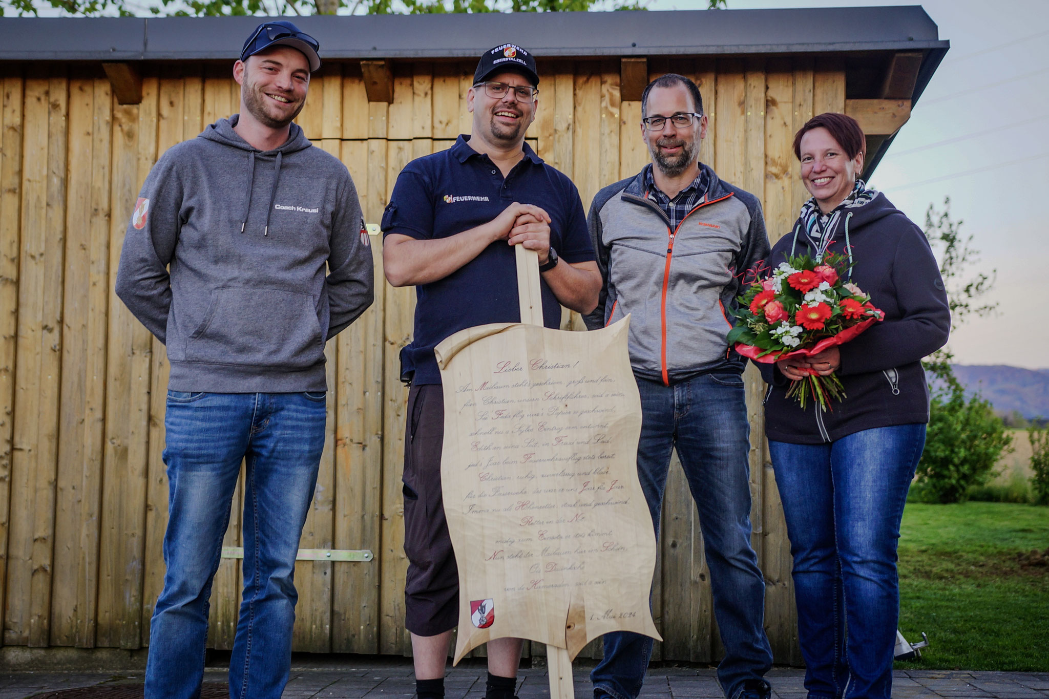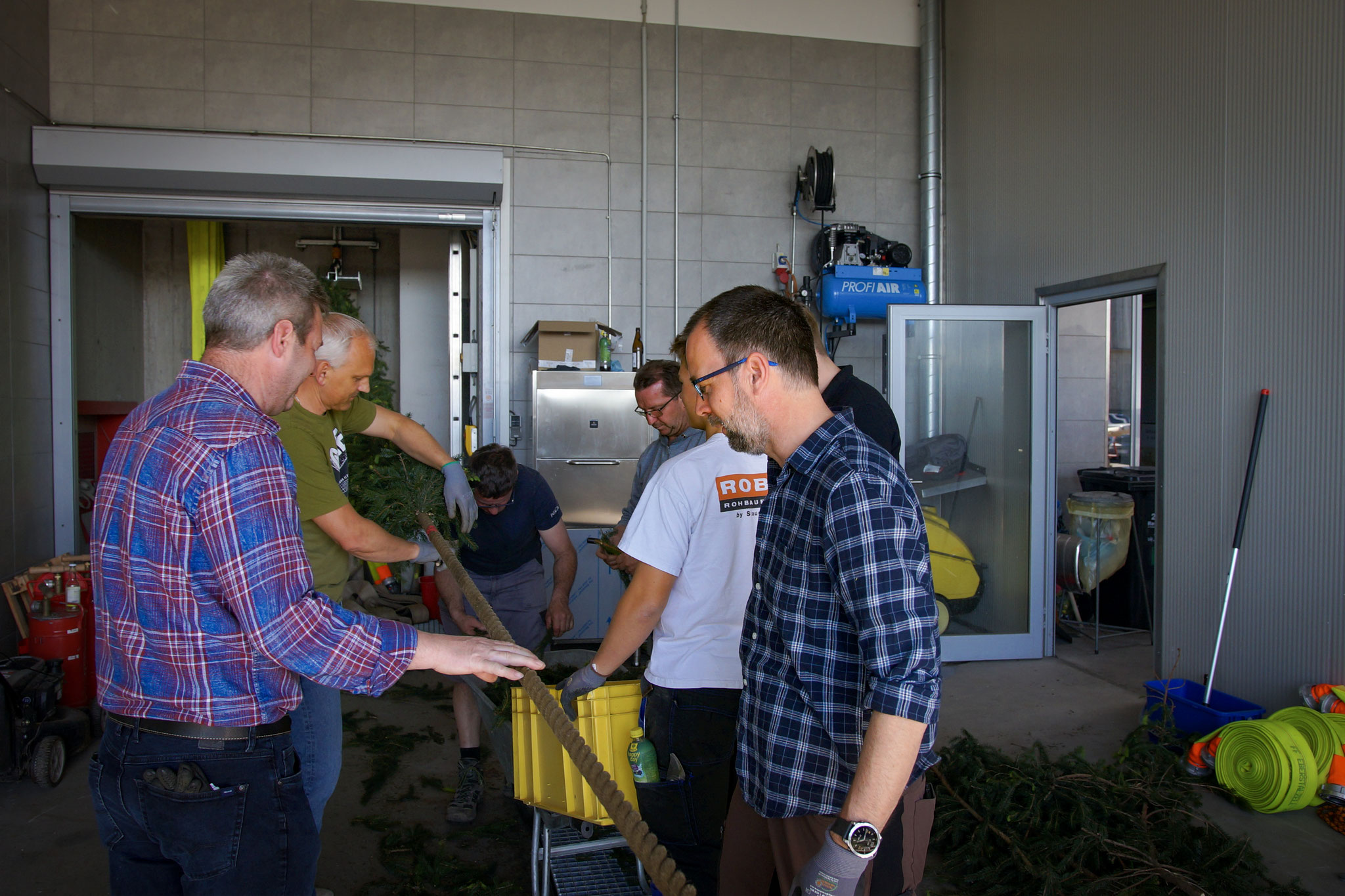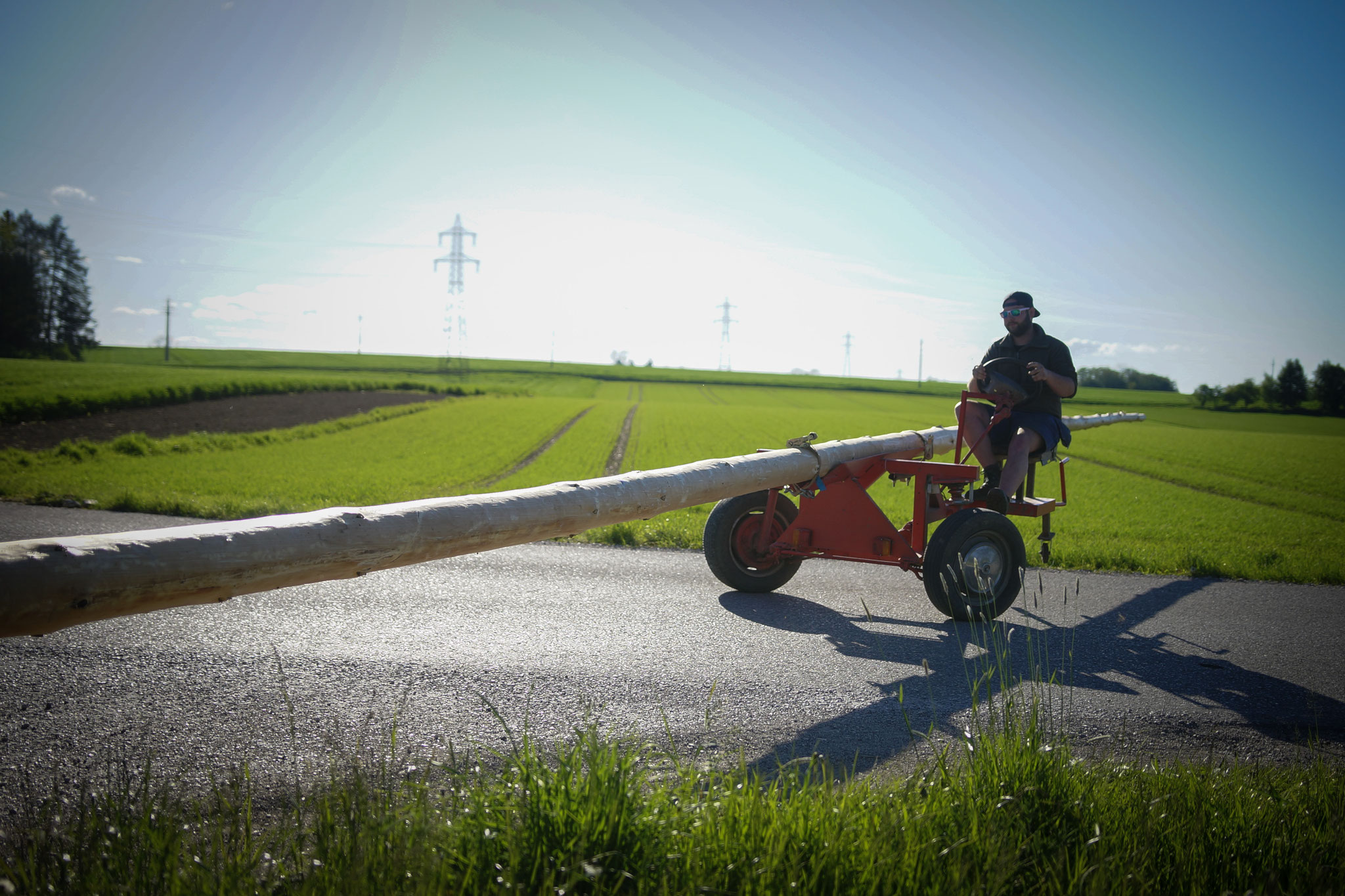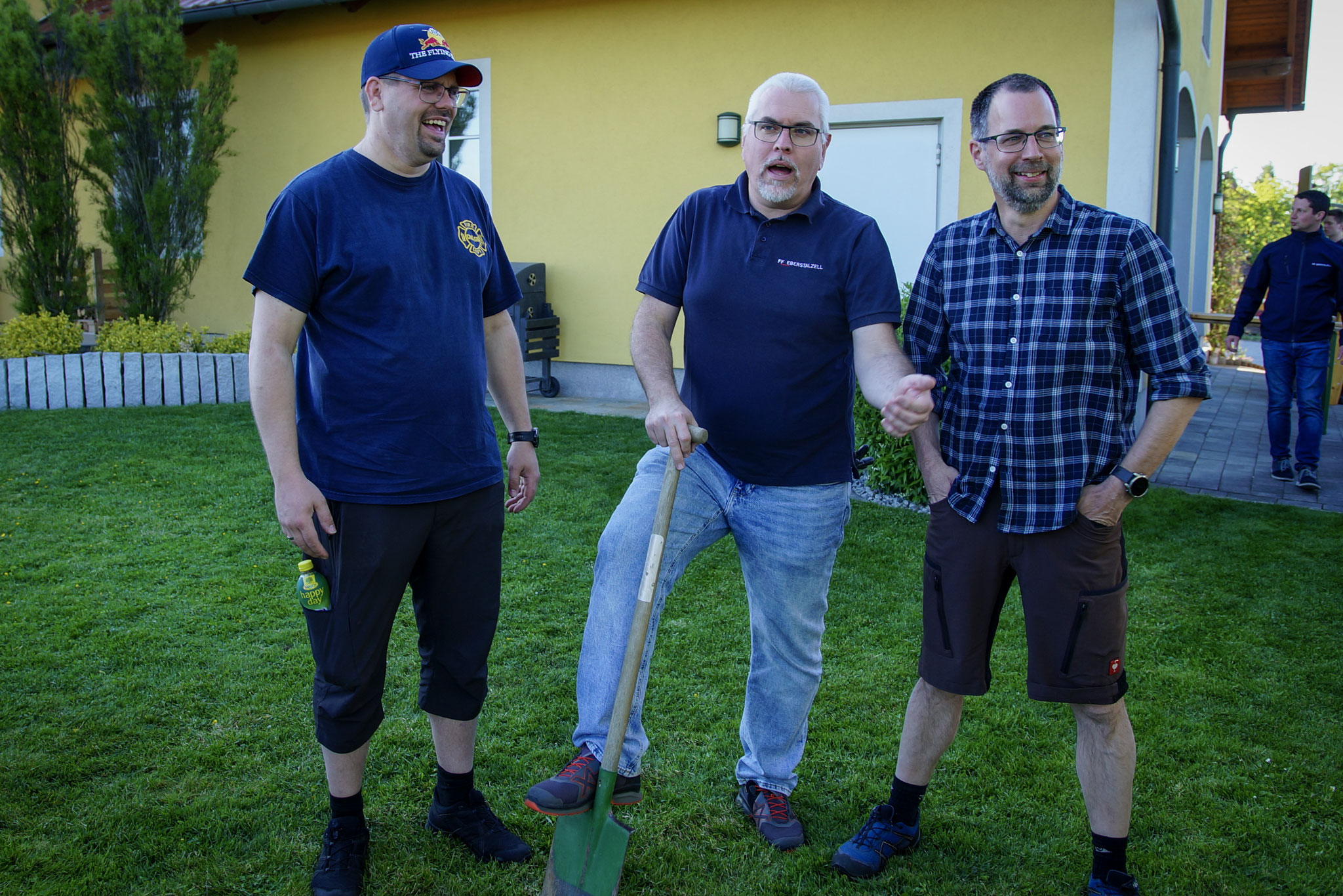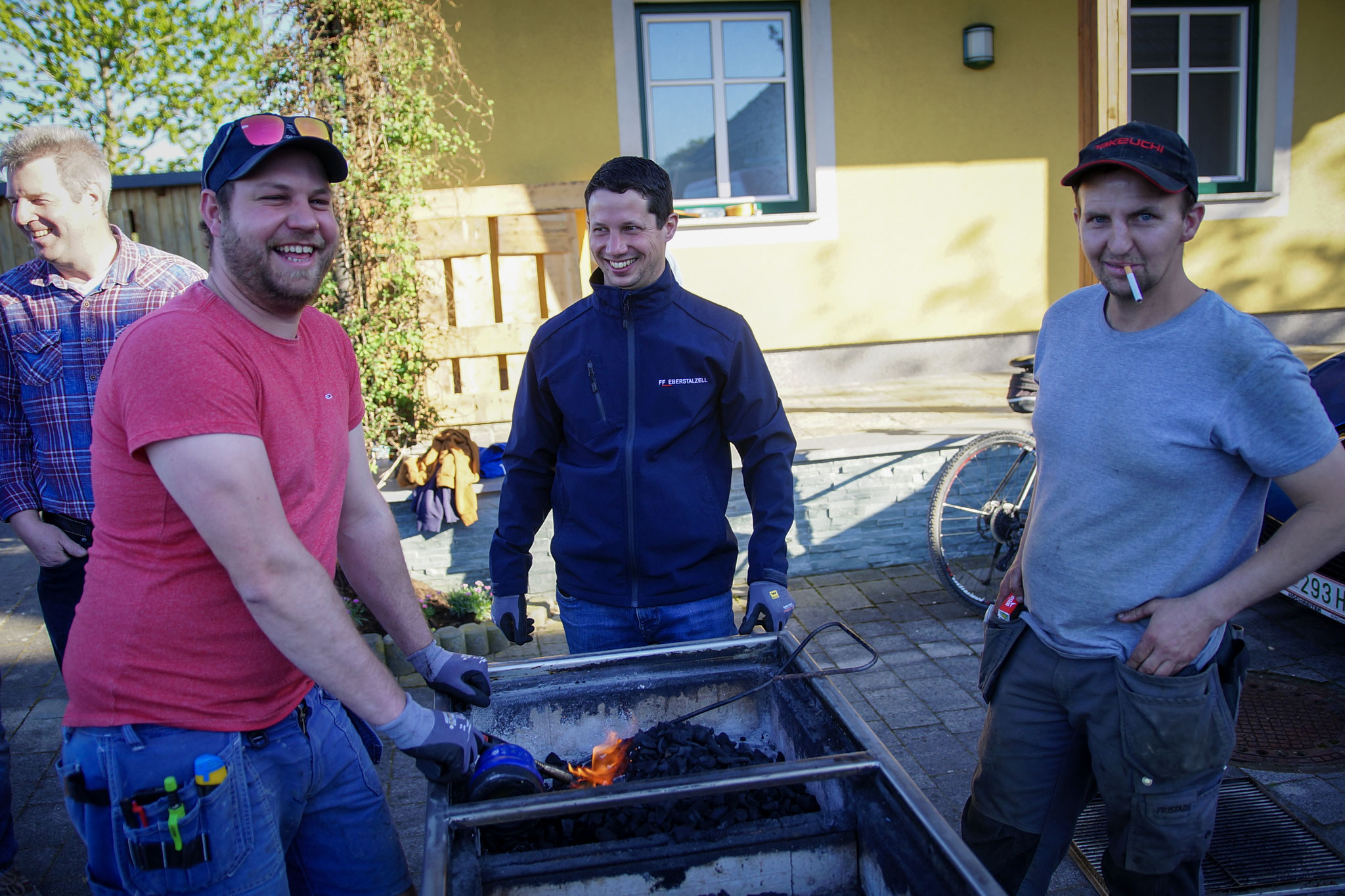 Im Feuerwehrhaus haben wir den Maibaum liebevoll vorbereitet und die Kränze gebunden, bevor wir ihn dann in einem festlichen Konvoi durch die Straßen von Eberstalzell begleitet haben. Und nun